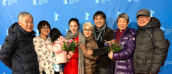 大合照(含特别从日本赶来的导演大冢龙治父母),左起大冢父亲、导演黄骥、千寻(导演女儿)、女主角姚红贵、大冢母亲、大冢龙治、制片人陈玲珍、监制徐小明