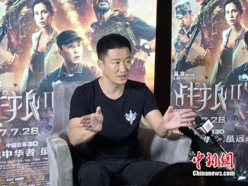 吴京接受采访。张曦 摄