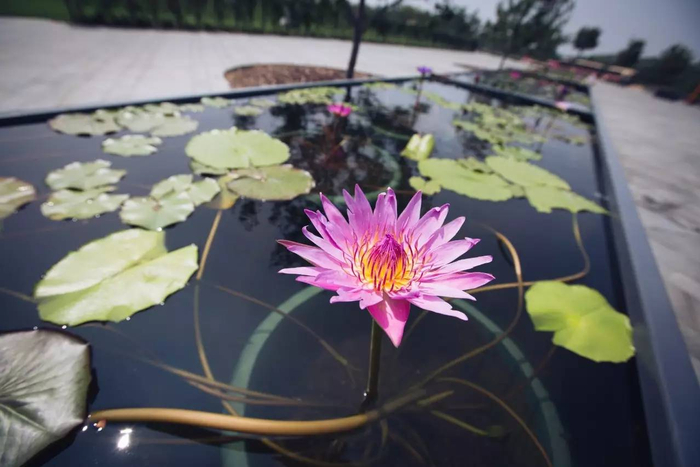 小、微型睡莲展区 分布于综合楼南广场内,以高低错落流水容器为基础,有众多新品睡莲及小、微型睡莲和原种睡莲展示。