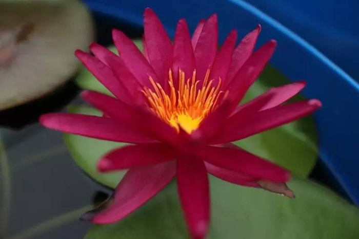 2015年IWGS最佳热带睡莲品种一等奖。叶边缘锯形、正面绿色有紫色斑纹和斑点、背面棕红色斑纹。花瓣红色,花蕊金黄。