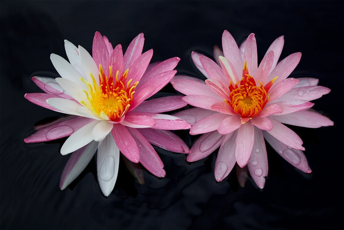 2011年IWGS最佳耐寒睡莲奖。花瓣粉色基底上镶嵌着白色条纹,梦幻白粉双色。