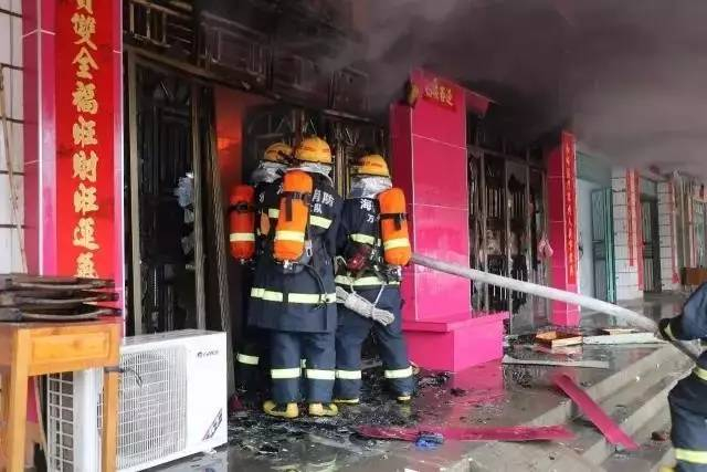 8时16分,万宁消防万城中队增援力量到场,此时,建筑内部火势正由前方蔓延到店铺后方。8时18分,大队指挥长立即重新部署作战命令:兴隆中队原水枪阵地和干线不变;万城中队18吨水罐车现场给兴隆中队2、3号车不间断供水;万城中队3号水罐车在建筑后门双杆线出4支枪对火势进行压制。