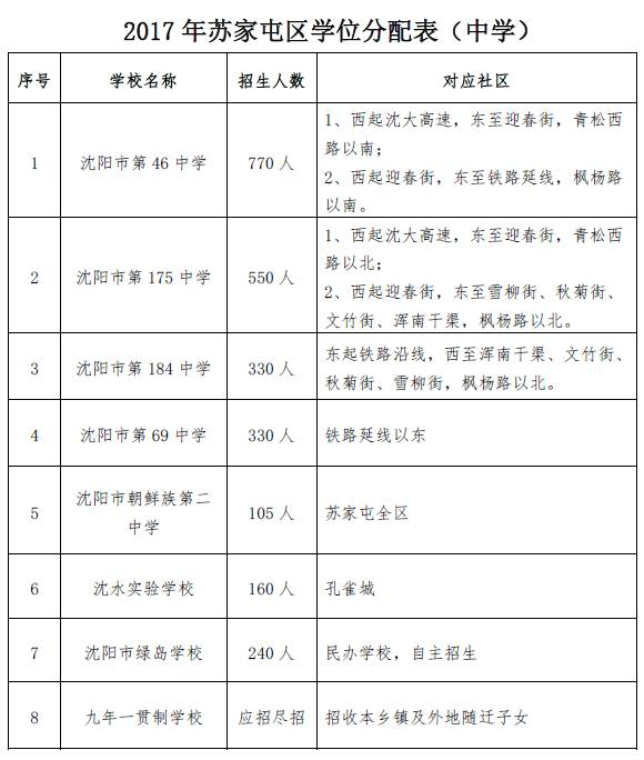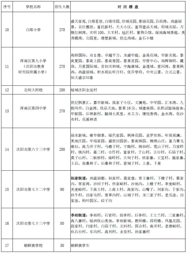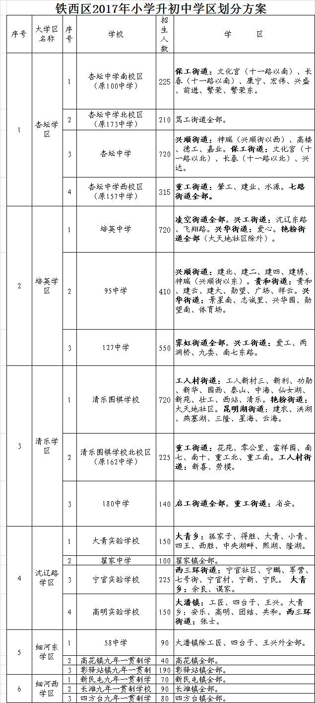 史上最全!2017年沈阳13个县(市)区学区划分方案出炉!