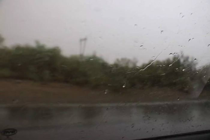 沙漠里的小雨打湿了车窗