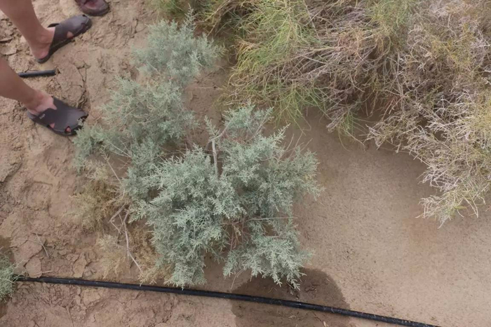 在沙漠上种植物和在房前屋后种菜什么的大不相同。这里的土是不能用的,流动沙土含有机物的含量不足千分之一,一般植物的根系不能在沙土内固定。所需要的各种碳氮元素没有。