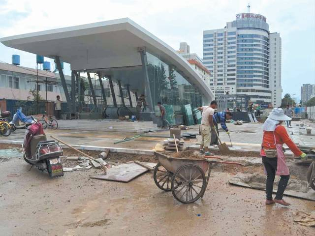 ↑西昌路站出入口抢铺地砖