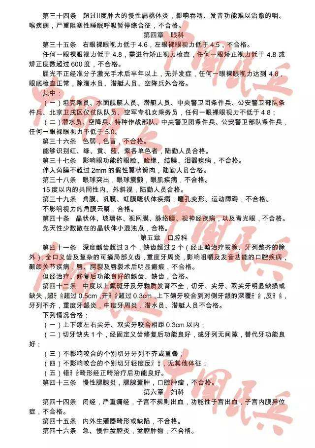 附:2017年应征公民体格检查标准