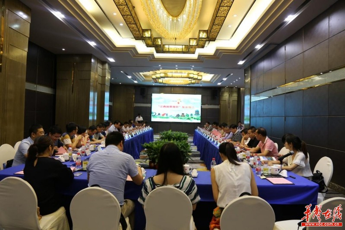 湖南省旅发委副主任尚斌出席推介会并致欢迎词,江西省旅发委副主任陈晓平则带来了宜春明月山、新余仙女湖、萍乡武功山等景区负责人分别进行了旅游资源的推介。
