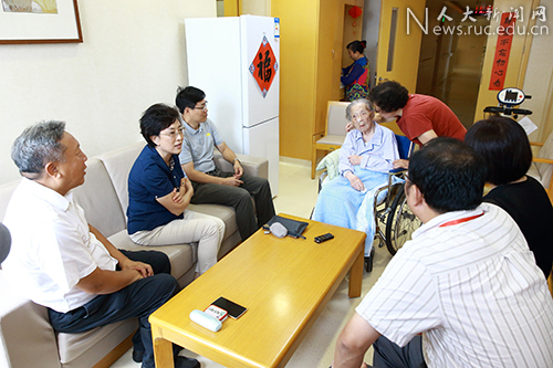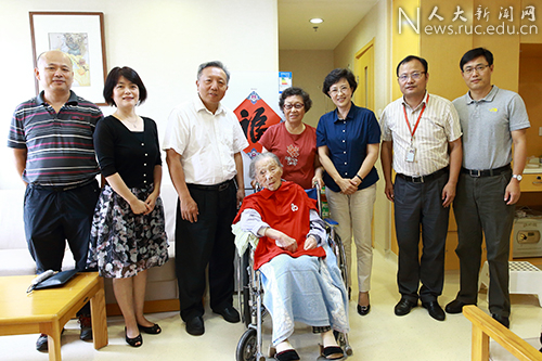 8月18日上午,中国人民大学党委书记靳诺、副校长吴晓球看望成仿吾老校长夫人、商学院百岁教授张琳。