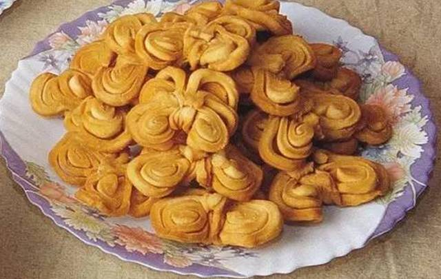大良崩砂以糖盐面团制片,折卷后切捏成蝴蝶形,油炸即成。形似蝴蝶,色泽金黄,甘香酥脆。 品种有蚝油、虾蓉、榄仁、南乳等。现包装好制作的多为南乳嘣砂。