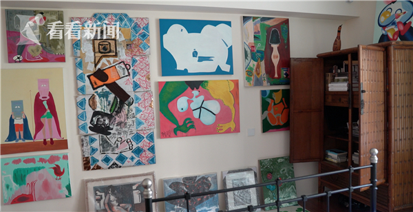 这里是诗人韩博位于昆山花桥的家,他赤脚走进一间房,屋里横七竖八堆满了画,与其这里说是书房,倒更像是一间储藏室。