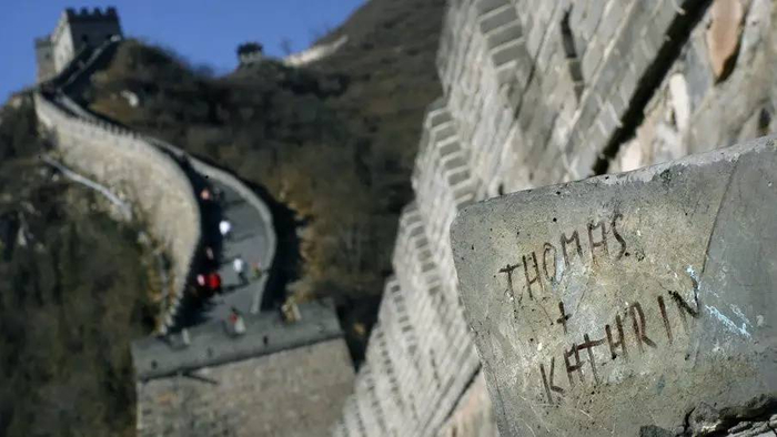 素质不分国界!长城惊现大量涂鸦刻字,你猜用的哪国文字?