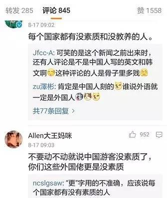 面对大量出现的外文刻字,中国网友们也表达了自己的看法。