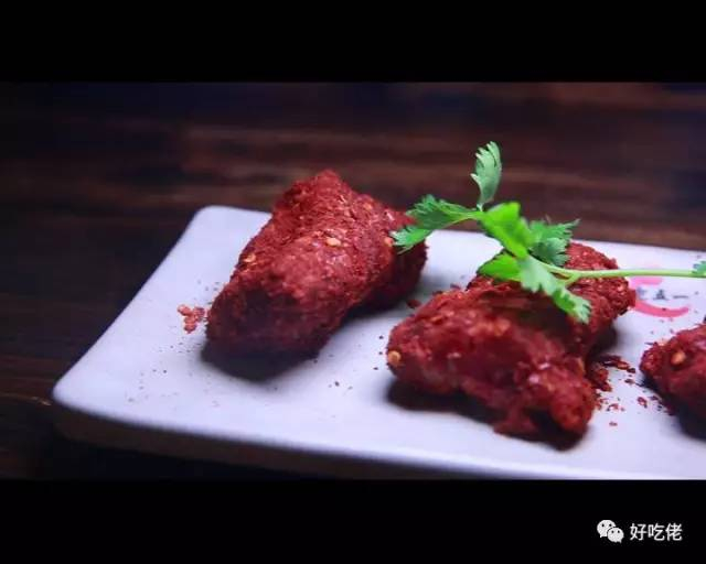 将排骨放进秘制的辣椒粉中打个滚,让它裹满粉末,然后腌制八到十分钟就大功告成了。而重庆老五一火锅家,还有一道小吃,是将我们平时经常吃到的食材做了一个组合,叫做酥肉双拼。