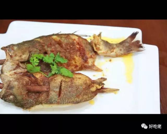 用红柳枝串着烤羊肉串咱们都不陌生,连鱼都用红柳枝串着烤就是真正的原生态了。他们选用上好的鲈鱼,在烤之前用新疆特有的香料腌制一下,而这个烤鱼的工具就是新疆特有的馕坑。鱼烤好之后是这样的。