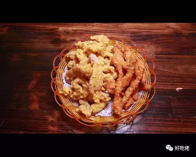 用花椒进行腌制过的五花肉,带了一股麻香味,再穿上特制的“衣服”,下到四五成油温的热油中,等漂起来之后就算是炸好了,那另外一种食材则是鸡柳了。