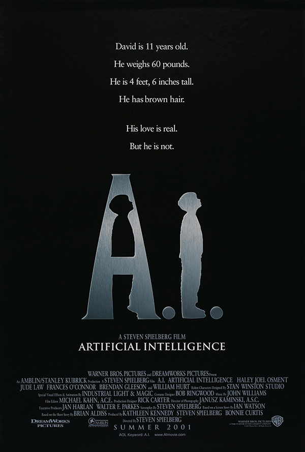 小时候印象最深的科幻作品是斯皮尔伯格的《人工智能》。在里面人类第一次成功制造了会爱的机器人,这种爱的程序一旦启动,机器人的生活目标就是对他的启动者投入全部的爱,而且就像真实的人类一样,也渴求得到爱的回应。电影里Monica夫妇因为儿子意外昏迷不醒,而将机器小孩David带回家,然而不久后他们的孩子Martin竟然醒了,于是就有了孩子之间的争宠、各种纠葛,Monica夫妇决定把David送回机器工厂销毁,当然在最后一刻Monica于心不忍,便让David自己逃走(其实也就是把他丢掉了),还和他说,很抱歉没有告诉过你,世界的真相是这样子的。之后两千年里David苦苦寻求让自己变成真实人类的办法(以为这样Monica就会爱他),无果。影片另一个机器人说过一句话,我们是为人类的错误受难,他们还痛恨我们,只是因为我们是永恒的。所以人类虽然拥有意识、欲望、情感,却无法拥有永恒的爱?