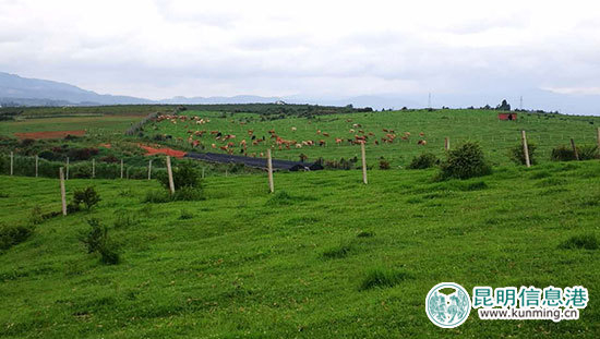 昆明信息港讯 实习记者房天琦 站在牧场尽头极目远眺,蓝天白云下,数百头牛正慢悠悠地咀嚼着嫩绿的草叶。这令人神往的场景,不在遥远的内蒙草原,而是出现在昆明市小哨乡的听牧肉牛养殖基地。