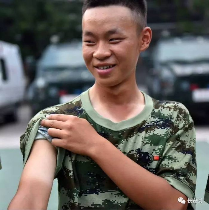 记者见到邹旺廷时,他刚刚结束今天的执勤任务回到队里。这个晒得黝黑的小伙子个子不高,单眼皮大眼睛,精神气儿十足。胳膊上、脖子上都带着深深的“广场红”——黑红的晒痕。他咧嘴一乐,露出一口大白牙。说起这张照片,邹旺廷挠挠头,有些腼腆地笑了,“这是太正常的小事了。”