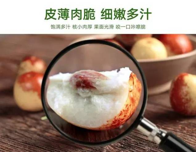 大荔冬枣糖度测试29.4,据《大荔县旧志》载:“所产之枣,个大、皮薄、核小、肉厚、富弹性、味脆甜、液汁多而出名。康熙年间已成皇室贡品。”
