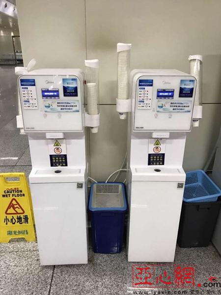 候机楼内配置新型智能饮水机,同时增加摆放点。
