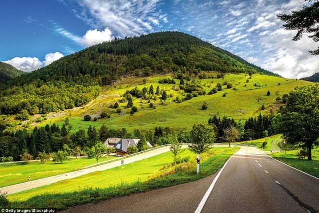 ↑德国,黑森林。黑森林是德国最大的森林山脉,位于德国西南部。黑森林的西边和南边是莱茵河谷,最高峰是海拔1493米的菲尔德山(Feldberg)。