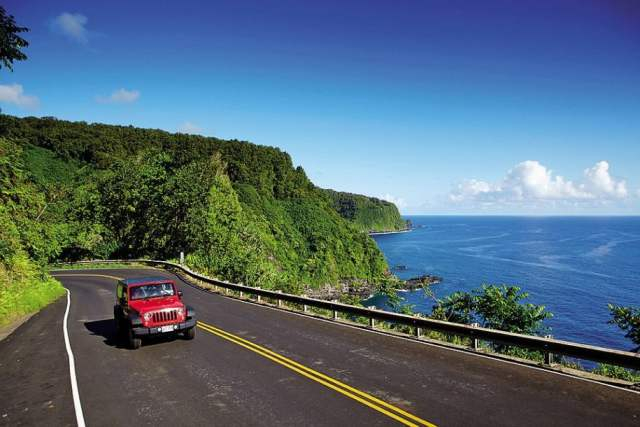↑美国,夏威夷,哈那高速公路。这段公路仅仅只有32英里(约合51千米)长,但是有超过600个拐弯处,以及54座桥。哈那高速公路几乎一路都是狭窄的单车道小桥、U型急转弯,司机在驾驶时必须保持高度的注意力集中,路边优美的景色只能让乘客好好品味了。