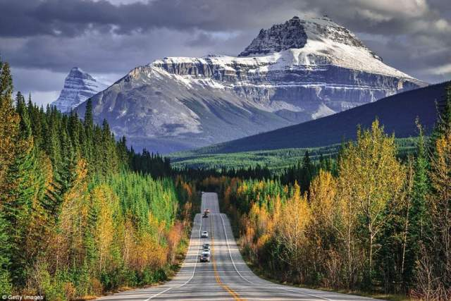 ↑加拿大,冰原公路。它也称为93号公路,是加拿大阿尔伯塔省的一条公路,公路总长为143英里(约为230千米),沿途风景秀美。它与北美洲大陆分水岭平行,穿越崎岖的落基山脉。它穿过班夫国家公园和贾斯珀国家公园,将路易斯湖和贾斯珀连接在一起。如今,93号公路与1号公路在路易斯湖和卡斯尔山重合,之后进入不列颠哥伦比亚的库特尼国家公园。在这里驾驶时,要小心“熊出没”。