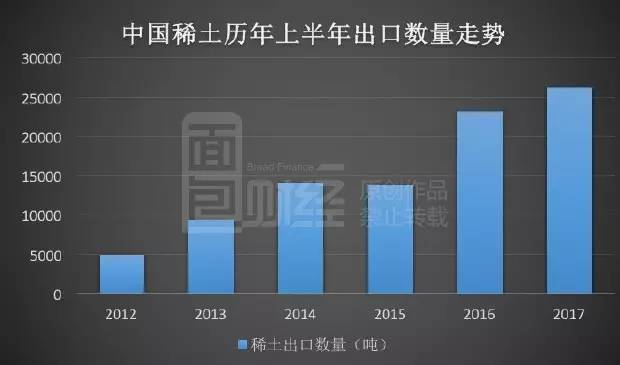 国外基于战略和环保原因不开采稀土,中国却在大量出口。今年上半年,中国稀土的出口量是五年前的四倍以上。