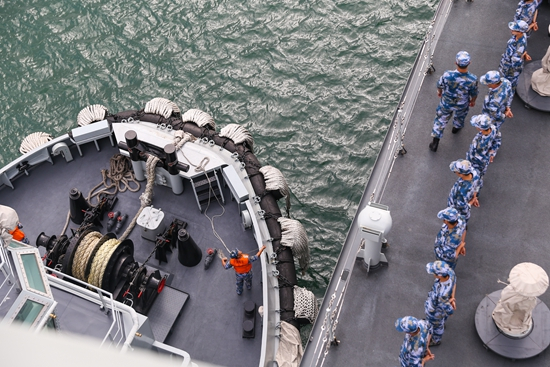 军舰航行的时候经历了一次风浪。“当时我们正在听课。”来自甘肃天水一中的汪亭妤说,这时突然听见身后有些响动,回头一看原来是跟自己住同屋的3个女生瞬间就不见了。等她跟出来才知道其中一个女孩子吐了。“当时大家都不舒服,但是那两个女生动作如此迅速地把同学扶出去了。我突然很感动,之前我们这些人的命运完全没有交集,但是仅仅几天的朝夕相处,就有了姐妹般的感觉,太难得了!”