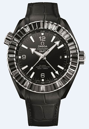 欧米茄带来的“深海之黑”腕表拥有600米深的防水性能,搭载欧米茄最先进的8906同轴至臻天文台机芯,保证了更高的精准度以及可抵御高达15000高斯的磁场。它还是一枚GMT两地时区腕表。表壳由黑色陶瓷和铂金精心打造而成,整只腕表共镶嵌116颗长方形切割的钻石。