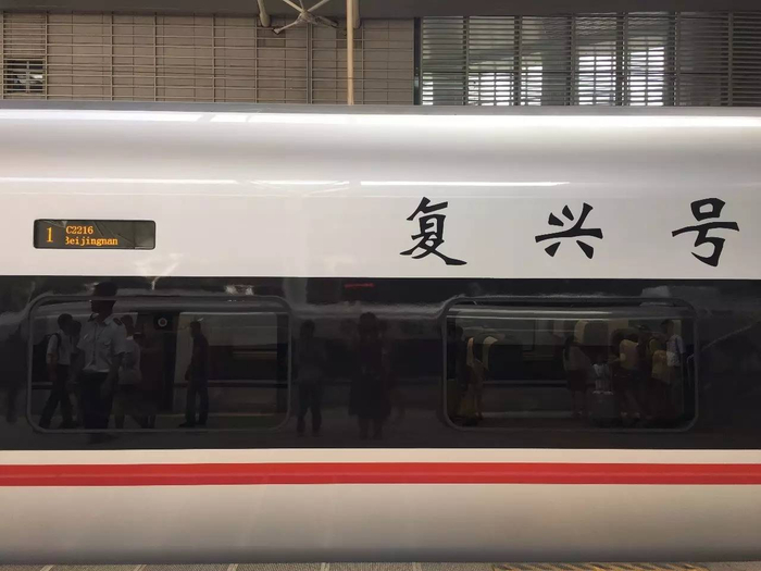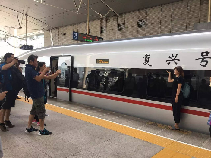 “复兴号”是具有我国完全自主知识产权、达到世界先进水平的中国标准动车组。7月27日,两列“复兴号”列车在京沪高铁上进行350公里时速体验运营。当时预计在9月中旬京沪高铁实施新的列车运行图后,“复兴号”将按时速350公里在京沪高铁线上线运营。