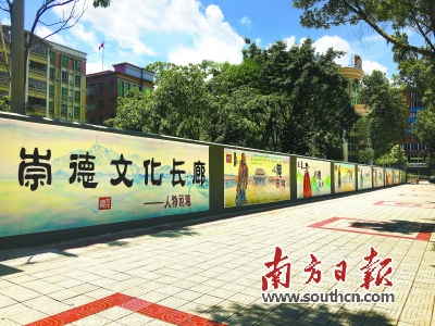 打造“崇德文化长廊”墙绘一条街。围绕德庆历史名人“德”故事,结合人物画像、典故、带“德”字成语和与德庆关联的风景为背景展现,在登云中路打造了一条500多平方米展示德庆历史文化和历史人物的“崇德文化长廊”,墙绘色彩绚丽、人物形象生动、“德”文化主题突出。