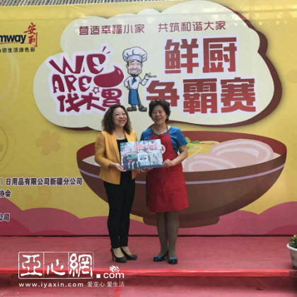 接下来,根据专家评审团和大众评审团的投票结果,共有13名主厨获得了本次“鲜厨争霸赛”的大奖,他们分别是来自2号家庭的胡霞,她所烹饪的“大盘鸡+苦瓜酿肉”获得“色香味俱全奖”价值2500元的安利皇后锅具的中式炒锅;来自8号家庭的魏磊所烹饪的“大盘鸡+烤香菇”获得营养搭配奖;来自4号家庭的周红“大盘鸡+素什锦”获得“原汁原味奖”;还有本次“鲜厨争霸大赛”最小的高颜值主厨——来自11号家庭的罗路瑶,她制作的“大盘鸡+麻辣牛肉”夺得秀色可餐奖,其余9名参赛家庭凭借现场优异的表现获得“民间高手奖”。此外,现场还颁发了线上活动诞生的5名“最佳背后故事奖”。