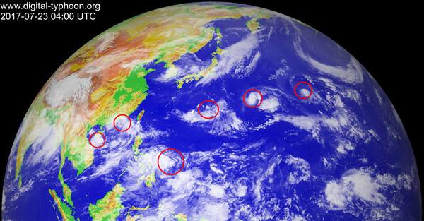 2017年7月23日12时,葵花8号卫星观测到的红外云图。