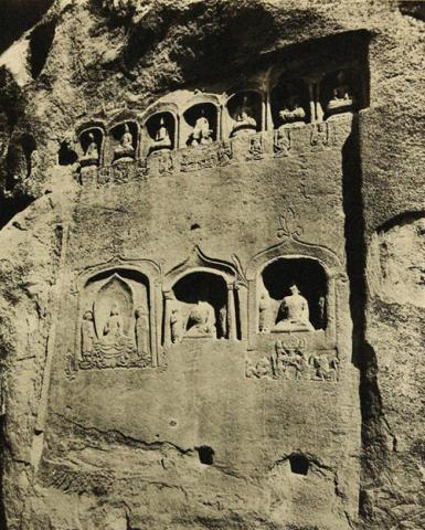 第三、四窟中层外崖诸佛龛(历史图片 《天龙山石窟》1922年出版 摄影:平田饶)