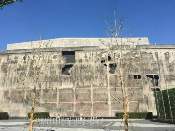 今天四行仓库根据历史照片恢复墙面弹孔的西侧山墙