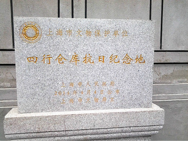 1985年9月,上海市文物保管委员会在四行仓库勒石纪念,文曰:“八百壮士四行仓库抗日纪念地”,并列为上海市优秀历史建筑加以保护。