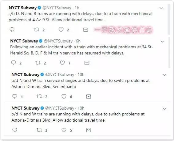 纽约地铁大都会运输署的官方Twitter推送列车延误信息已成常态,美国网友表示已无力吐槽。