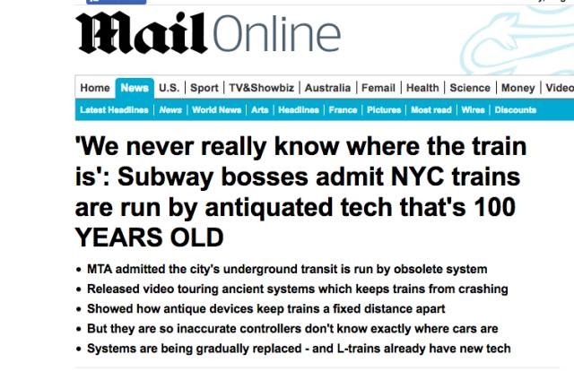 《纽约时报》文章称,纽约地铁长期延误的主要原因可归结成三个因素——机械故障、轨道垃圾及乘客落轨。此外,纽约的地铁系统信号切换设备大多在二战前安装,这令地铁运行状况雪上加霜。