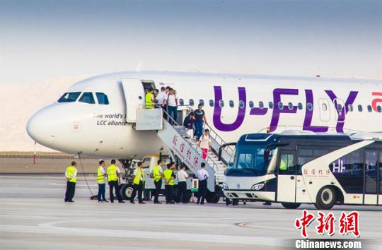 8月21日傍晚,一架从香港直飞敦煌的A320客机历时近5个小时飞行抵达敦煌。 王斌银 摄