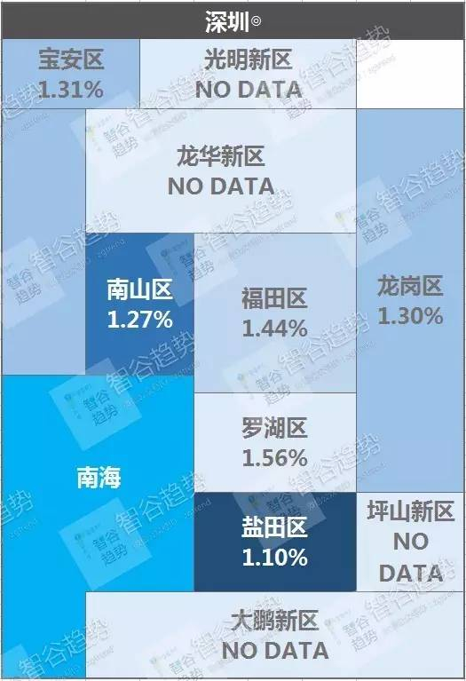 广深都市圈也是租金回报率较低的集中区域,广州周边如佛山、中山、珠海,深圳周边如惠州,都是房产热门的城市。