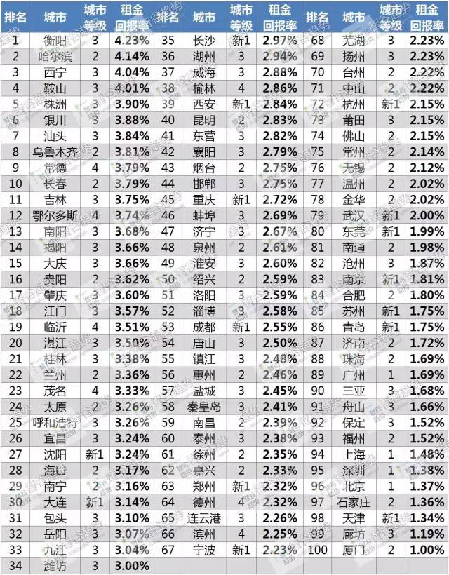 (百城租金回报率全名单 制图:小五)