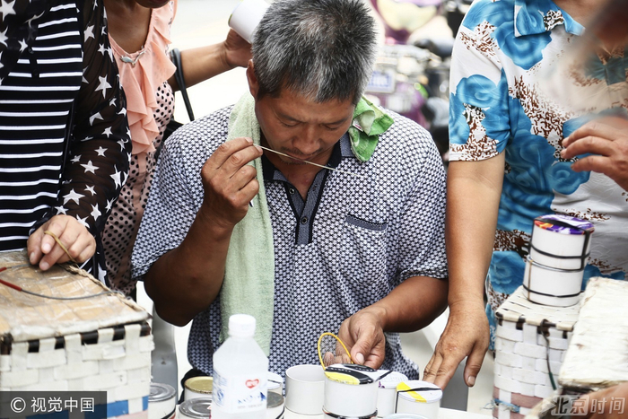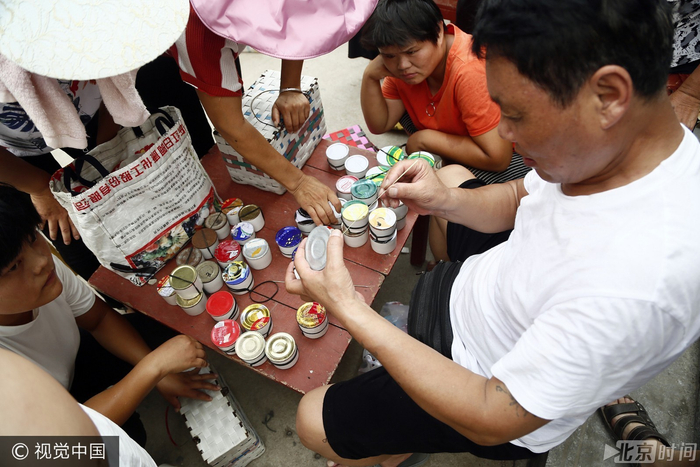 在来来往往的人群中,大多是妇女提着篮子前来销售,辛苦捕捉一晚上的男人们则在家中休息,而古城村村民老张是个例外,因为担心妻子把蟋蟀卖便宜了,他专门提着篮子到市场寻找买家。几经周折,老张的蟋蟀以700元的价格卖给了一位上海买家。“之前,曹家村一村民以1.2万元的价格卖了一只,他们村里还有人卖出了1.5万元的高价,据说今年的最高价是5万元一只。”说话间,老张满脸的羡慕之情。