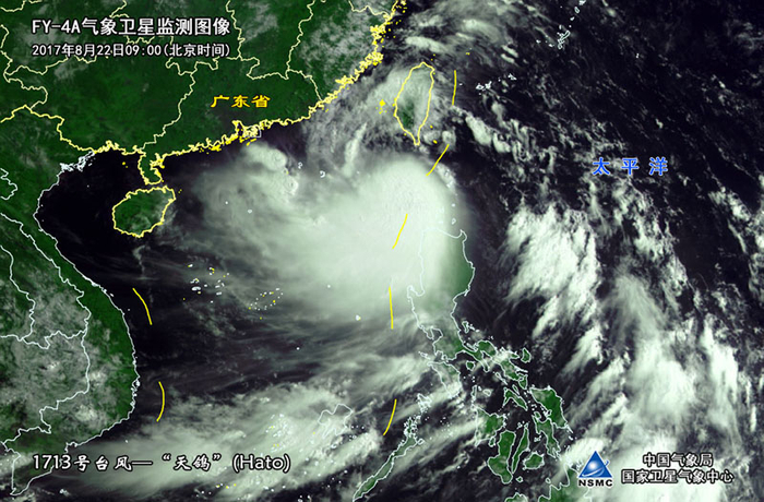 2017年8月22日9:00(北京时间)FY-4A气象卫星监测图像。