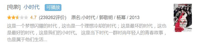同理,非理性、类型化、跟风,是郭敬明作品、琼瑶小说、汪国真与席慕蓉的诗歌、小虎队音乐等不同时代青春文艺流传的本质。青春有自己的属性,无罪可原。但是《小时代》却让很多人看到了青春之外的东西,产生了无法摆脱的不安。