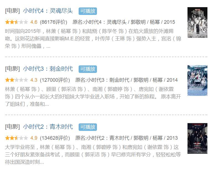 虽然电影票房成绩各有优劣,但是郭敬明执导的电影观众评分都一如既往的低。从四部《小时代》到《爵迹》,豆瓣评分最高的只有4.9分,评分最低的《爵迹》只有3.8分,5部电影的平均评分只有4.5分。