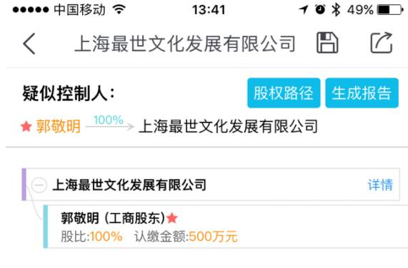 启信宝数据还显示,郭敬明还是6家公司的股东,包括乐视影业,其出资500万,出资比例0.6%。