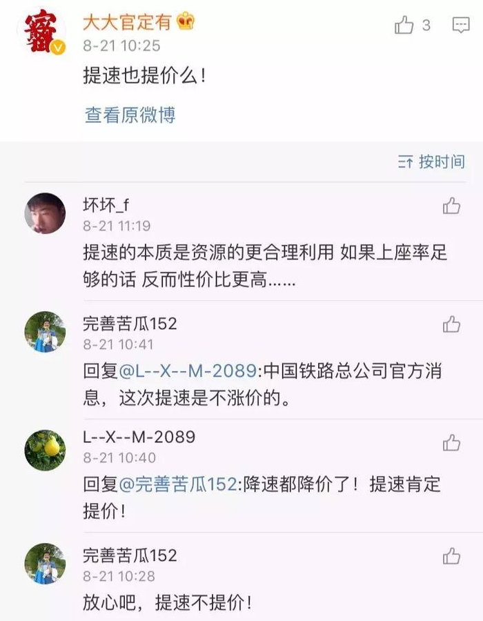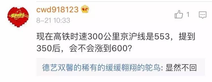 不过,也有另一种声音:车速提高后,一条线路上需要的动车组数量会减少,动车组车底周转加快,购置费用也随之降低,所以成本不一定增加,票价也不一定要涨。关于这方面,网友已经开始了争论: