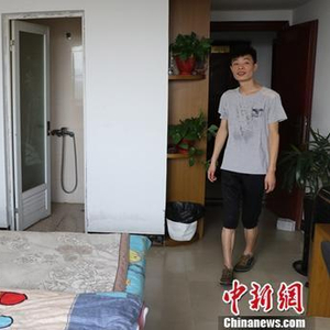 8月9日,台州玉环一名小伙展示自己通过当地租房平台找到的房子。中新社记者 王刚 摄